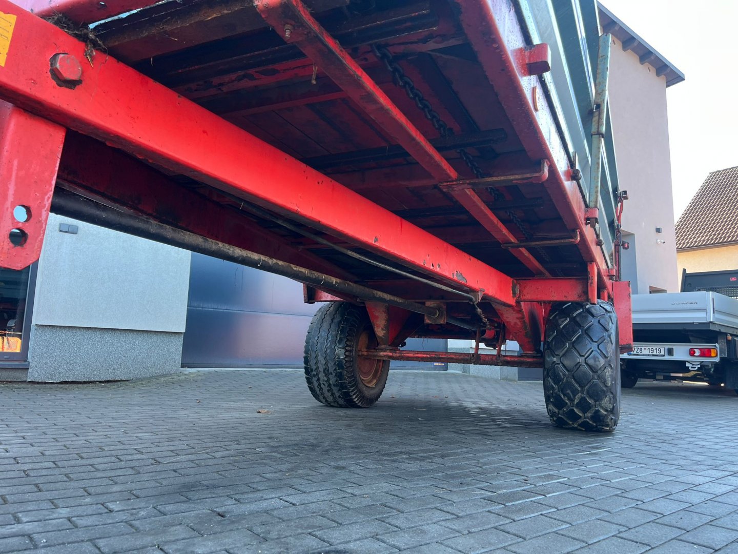 Odnímatelný frézový adaptér s vertikal. válci - rozhoz do šířky 6-8 m . Možné využít na různé převozy s plně funkční výsuvnou podlahou. Kardan, ochranná síť, nájezdová brzda, nástavby.